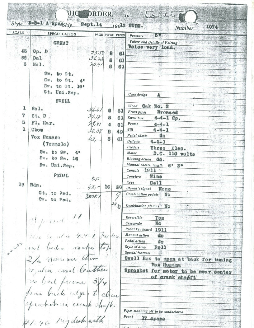 Swell8 Stopped Diapason8 Salicional4 Flute Harmonic8 Oboe (TC) 8 Vox HumanaTremoloSw to Sw 16-4Sw Unison Off