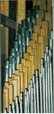 The extant Great 8' Open Diapason pipes are painted gold with brown