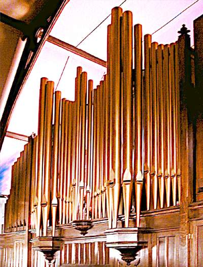 The exact nomenclature of original stops and controls is not verified. The organ is extant but has been electrified and rebuilt with new controls.  The preceding stoplist is based on the extant, rebuilt organ; and on other extant and documented examples of the builder's work from this period.