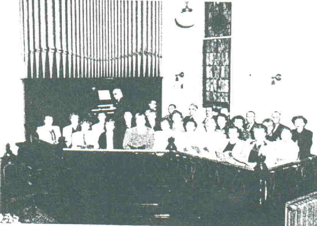September 9, 1943: “Special meeting of Trustees held this evening for the purpose of discussing the rebuilding of the church organ.... Mr. Lennox read an agreement from a Mr. Raymond G. Pinielow [??] to do the work of rebuilding the Organ for $590. Motion made and carried that the vice President + Sec. sign a contract to have such work done. Mr. Lennox + Mr. Mueller the church organist were appointed a committee to look after the repairs.”