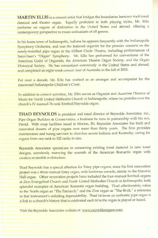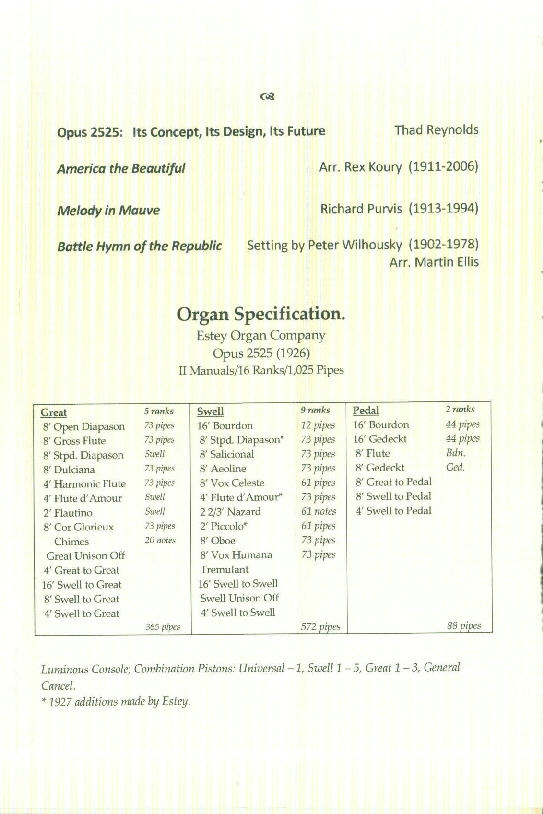 Flute 8 Stopped Flute (Sw) 8 Dulciana 4 Flute Harmonic 4 Flute