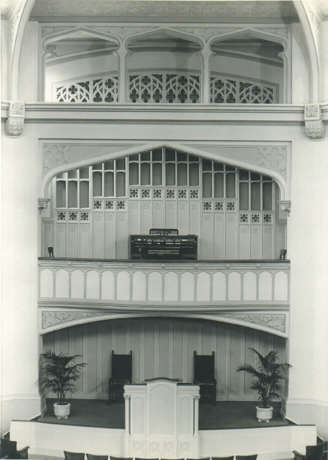 Swell 16 Bourdon 8 Open Diapason 8 Gedeckt 8 Salicional 8 Voix Celeste 8 Aeoline 4 Flute Dolce 2 2/3 Nasard 2 Flautino 8 Oboe 8 Vox Humana Tremolo Sw Unison Off Sw to Sw 16-4 |
