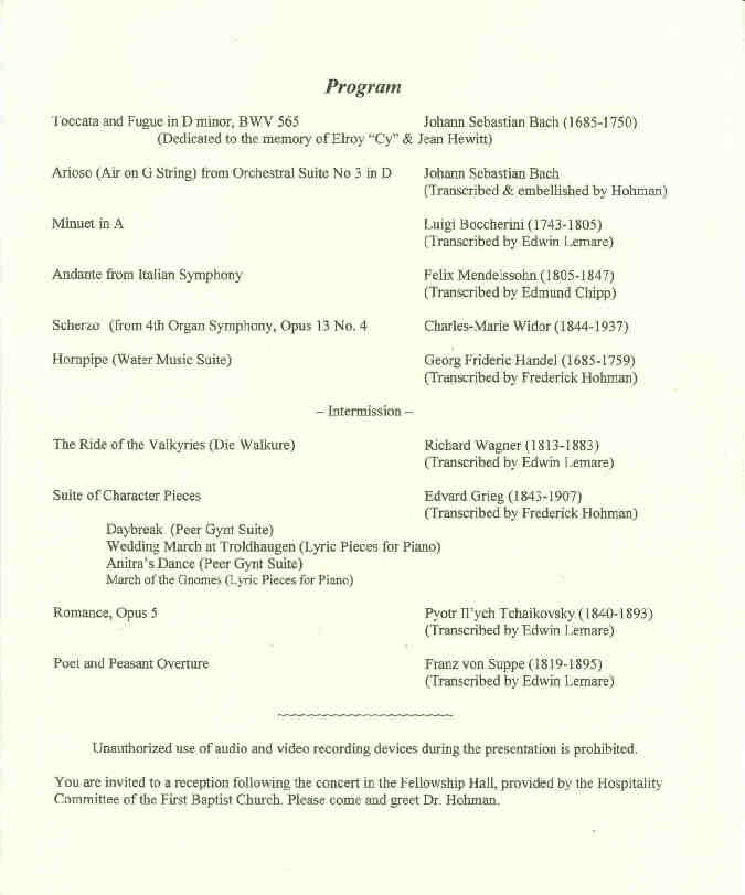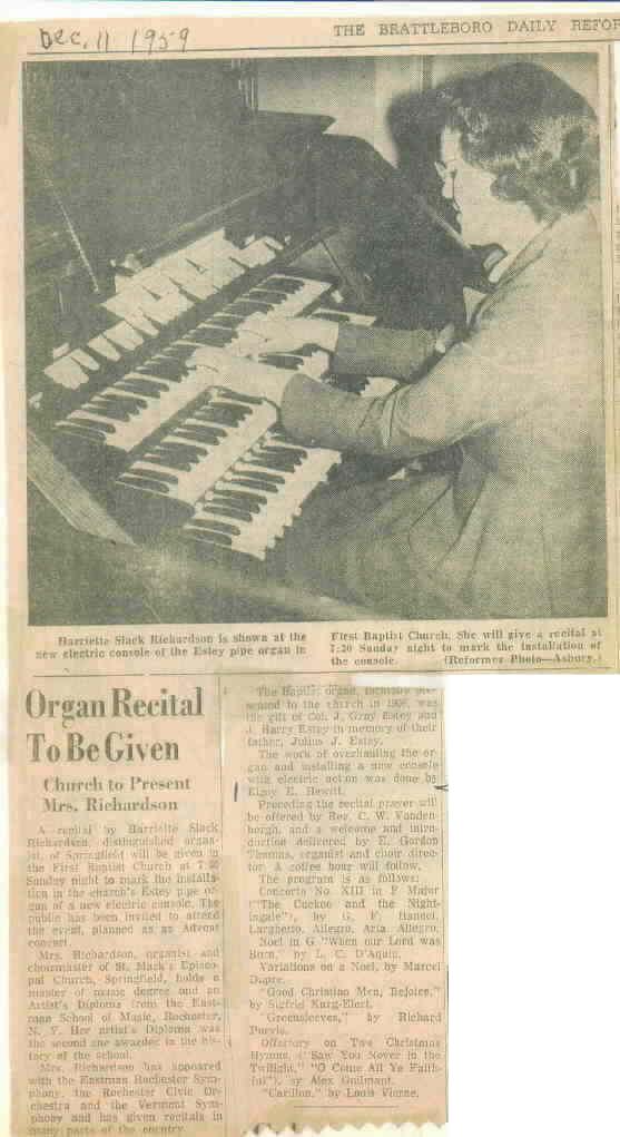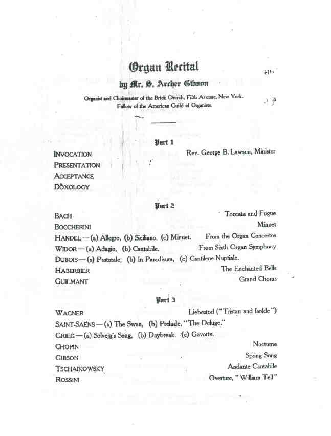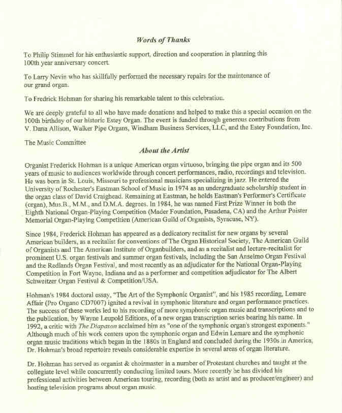 Gray Estey and Julius Harry Estey. The dedicatory recital was played on