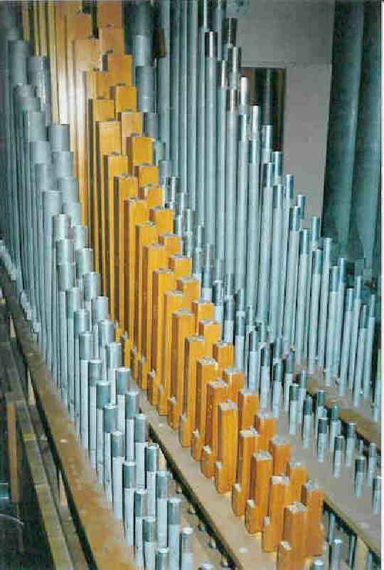 The Pedal 16' Lieblich Gedeckt is the same as the 16' Bourdon but with all 32 pipes on soft wind.