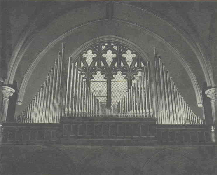 The Great is installed in the rear gallery of the church, with the rest of the organ in the front.