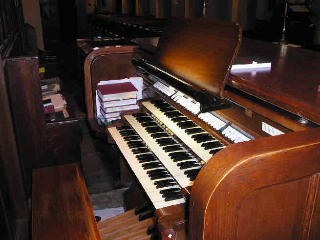| Hauptwerk 16 Bourdon 8 Principal 8 Erzhaler 4 Prestant 4 Kleingedeckt 2 Octav IV Mixtur 8 Processional Diapason (TC) Sw to Gt 8 Pos to Gt 8 Schwellwerk 8 Grossgedeckt 8 Salicional 8 Vox Celeste (TC) 4 Principal 4 Traverseflote 2 2/3 Nazard 2 Waldflote 1 3/5 Terz IV-VI Plein Jeu 8 Helle Trompete Tremolo Sw to Sw 16-4 Sw Unison Off |