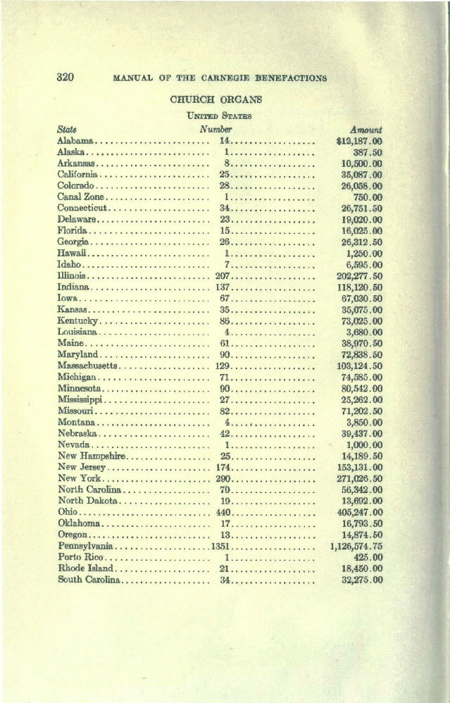 Before many organs had been provided by Mr. Carnegie, it appeared