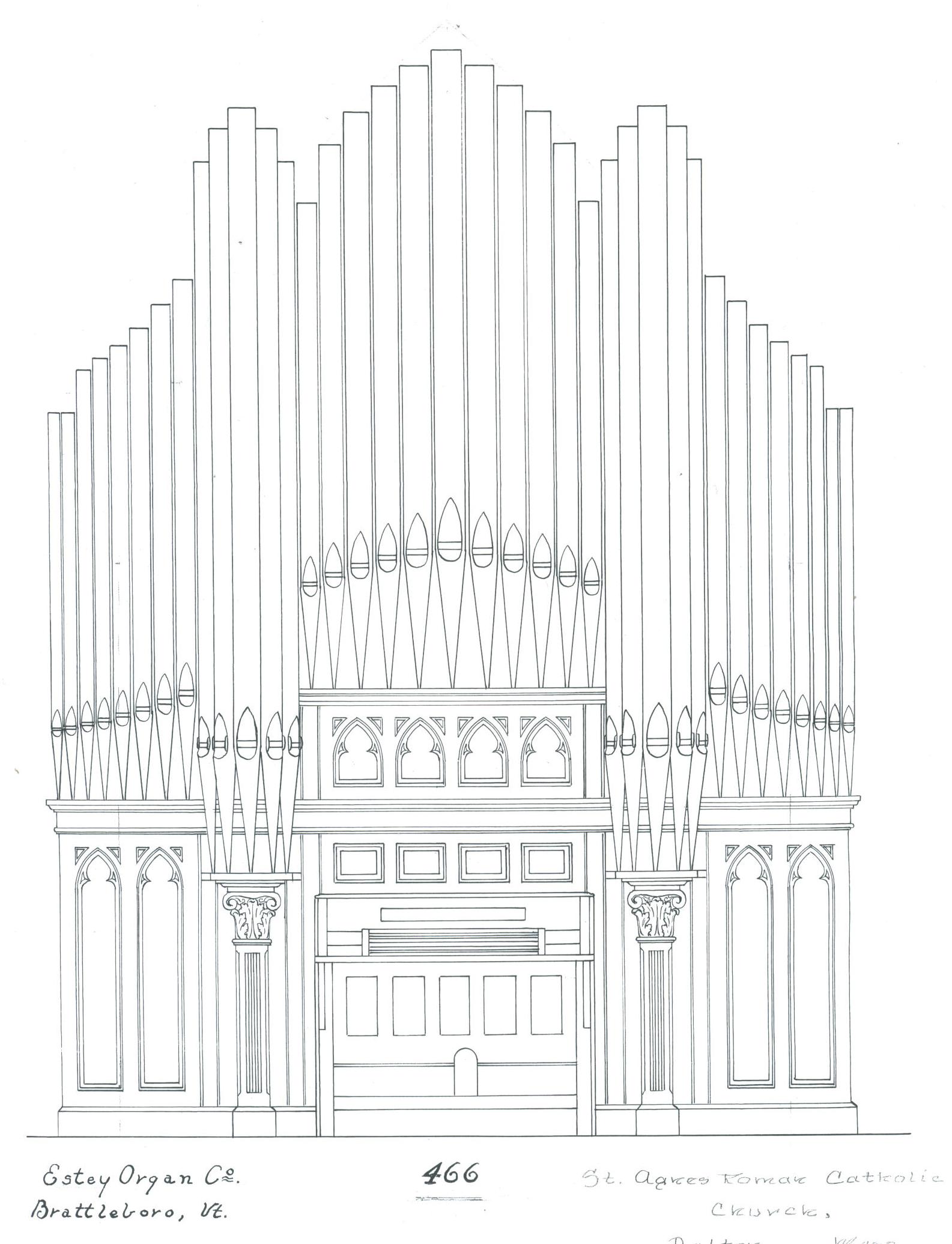 drawings for the pipe facades of Estey organs.  Some, but not all, of them